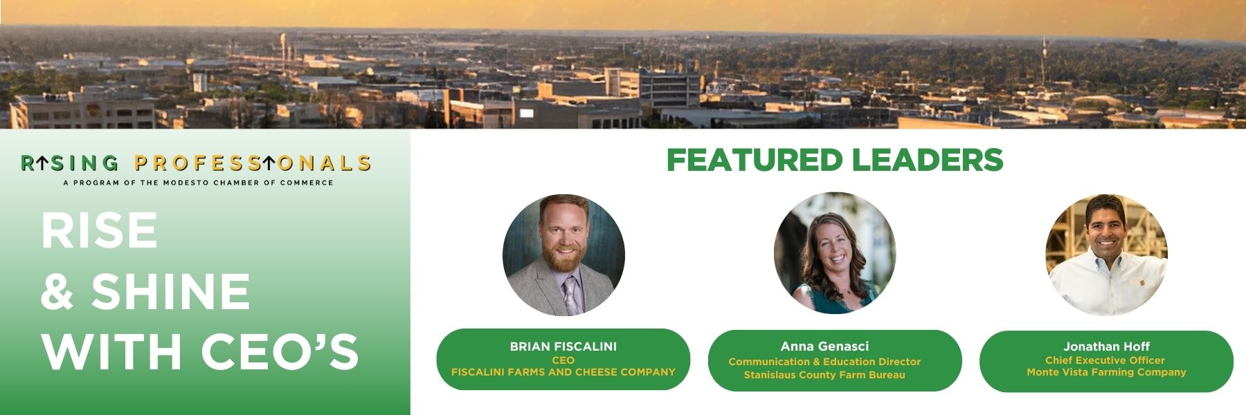 Don’t miss out on this exceptional opportunity to rise and shine with CEOs at the Modesto Chamber of Commerce Breakfast Leadership Panel, brought to you by the Rising Professionals Program.